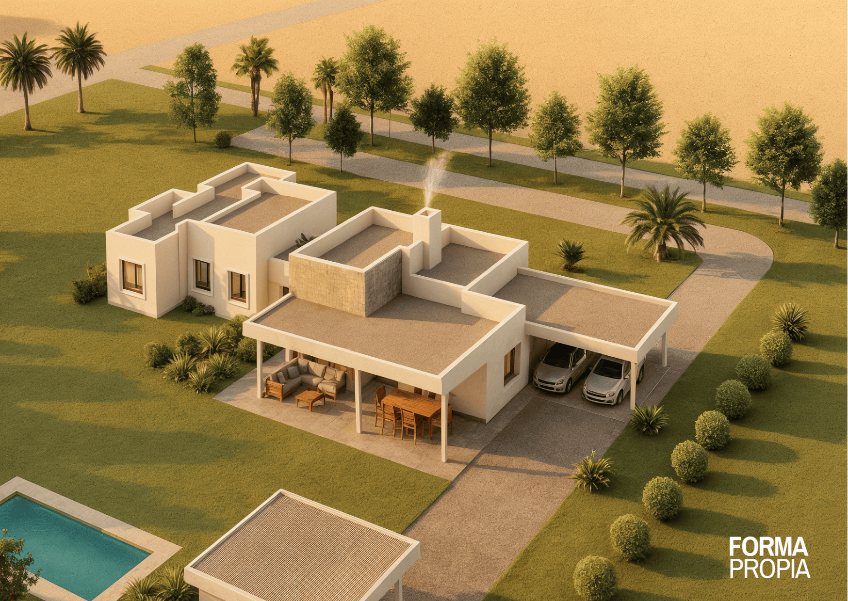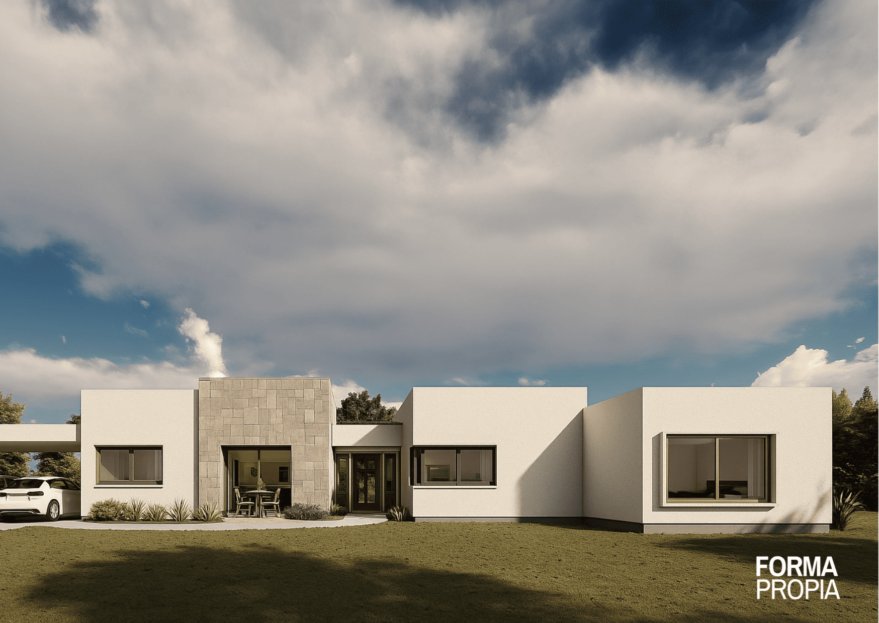 El resultado es una vivienda mediterránea contemporánea, con espacios amplios, buena iluminación natural y una composición volumétrica bien resuelta. El diseño combina funcionalidad con una imagen arquitectónica atemporal, adaptada al contexto y pensada para una construcción eficiente.